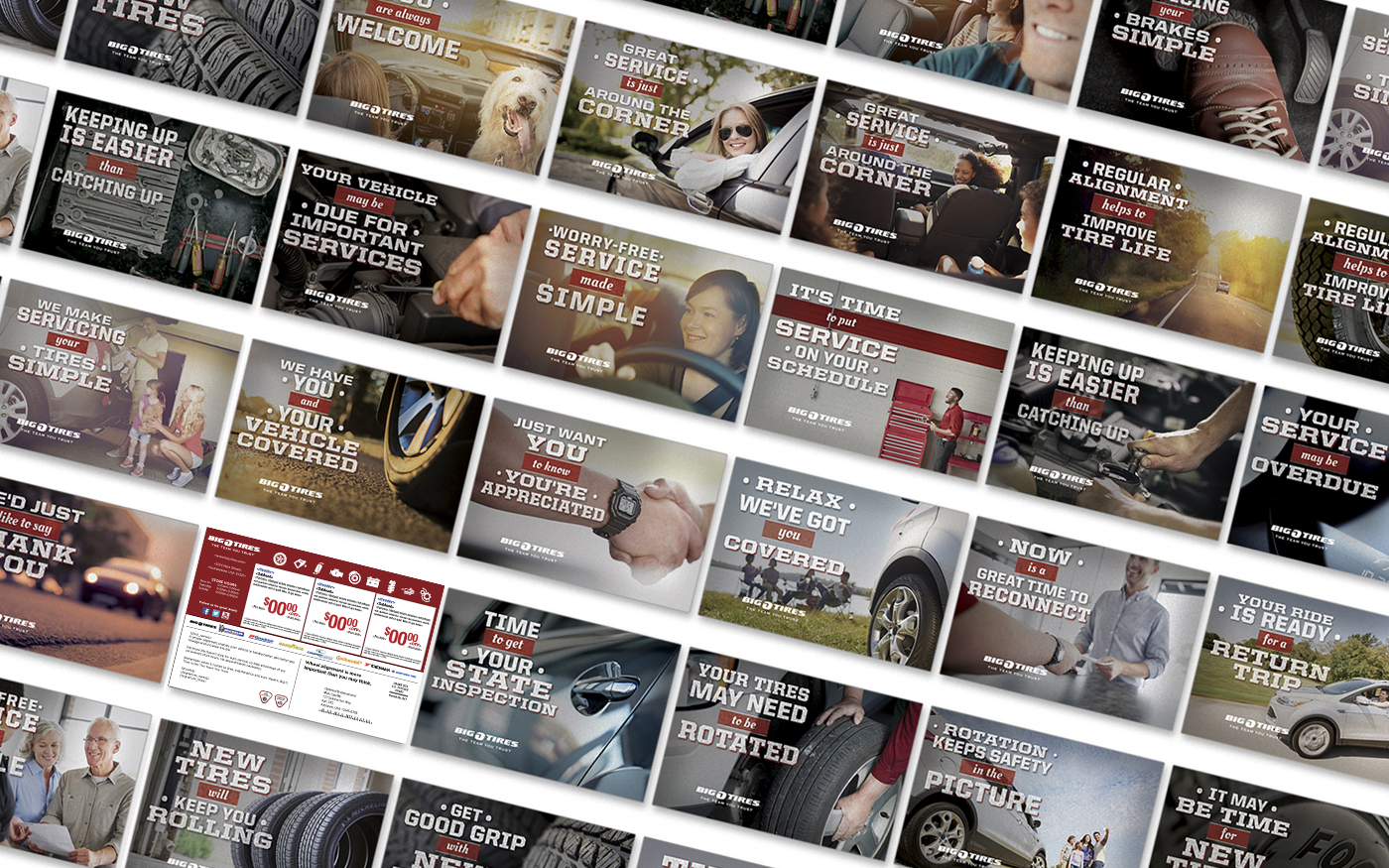 The design solution required variability for brand, dealer, customer information and vehicle imagery without sacrificing brand attributes such as color, font, layout and imagery requirements.