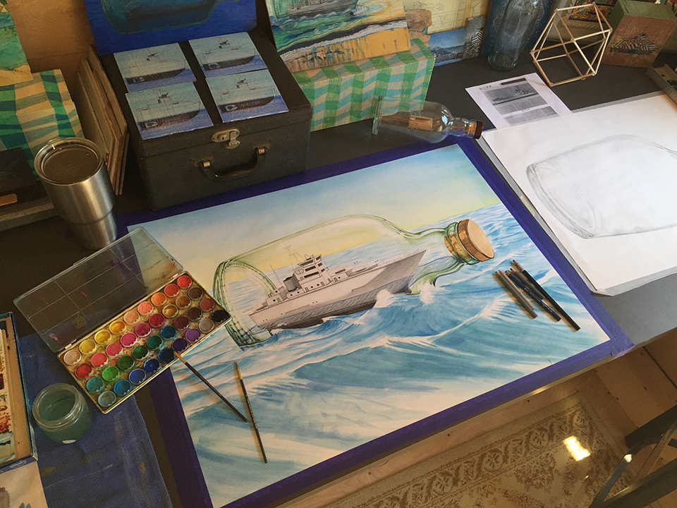 The ship in a bottle is a representation of potential. Each ship is capable of taking action to escape but is relinquishing its time to flow in the currents safe inside its capsule.