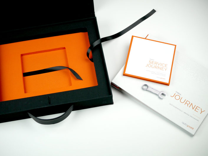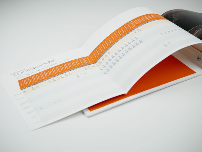 Using charts and other graphical representations of the journey path accomplished this better than description alone. The finished product, delivered in hardcover post-bound format to allow for updates as the Journey grows and changes, also contained a digital and travel-sized copy of the book, packaged together in a portable, refined black box.